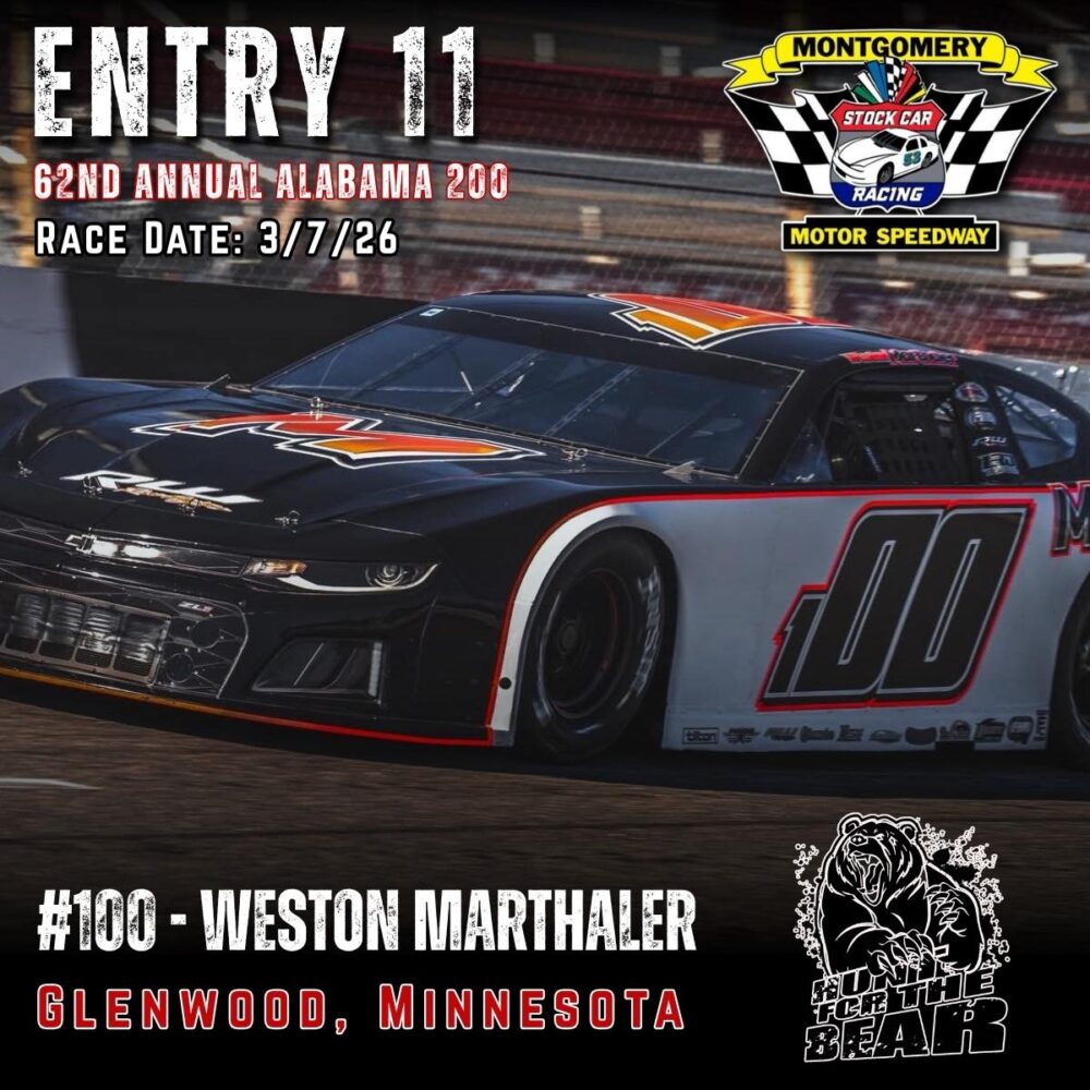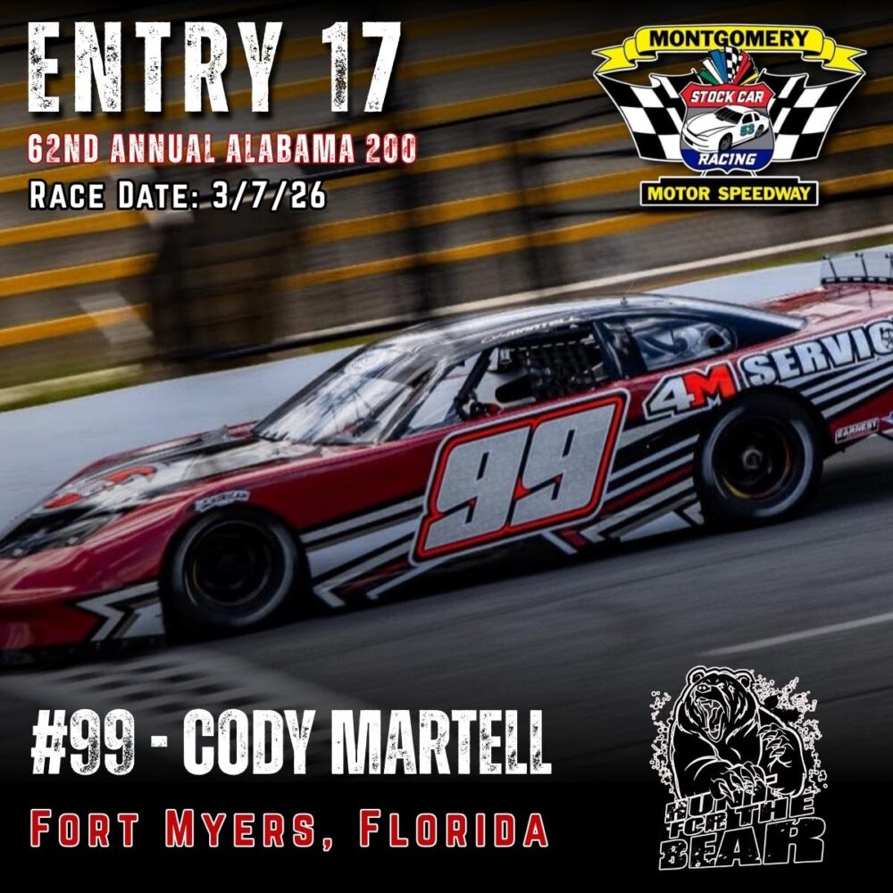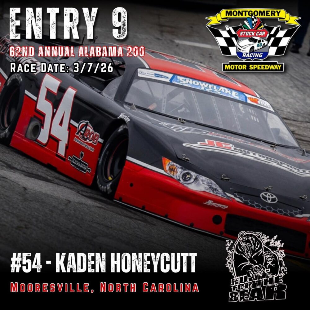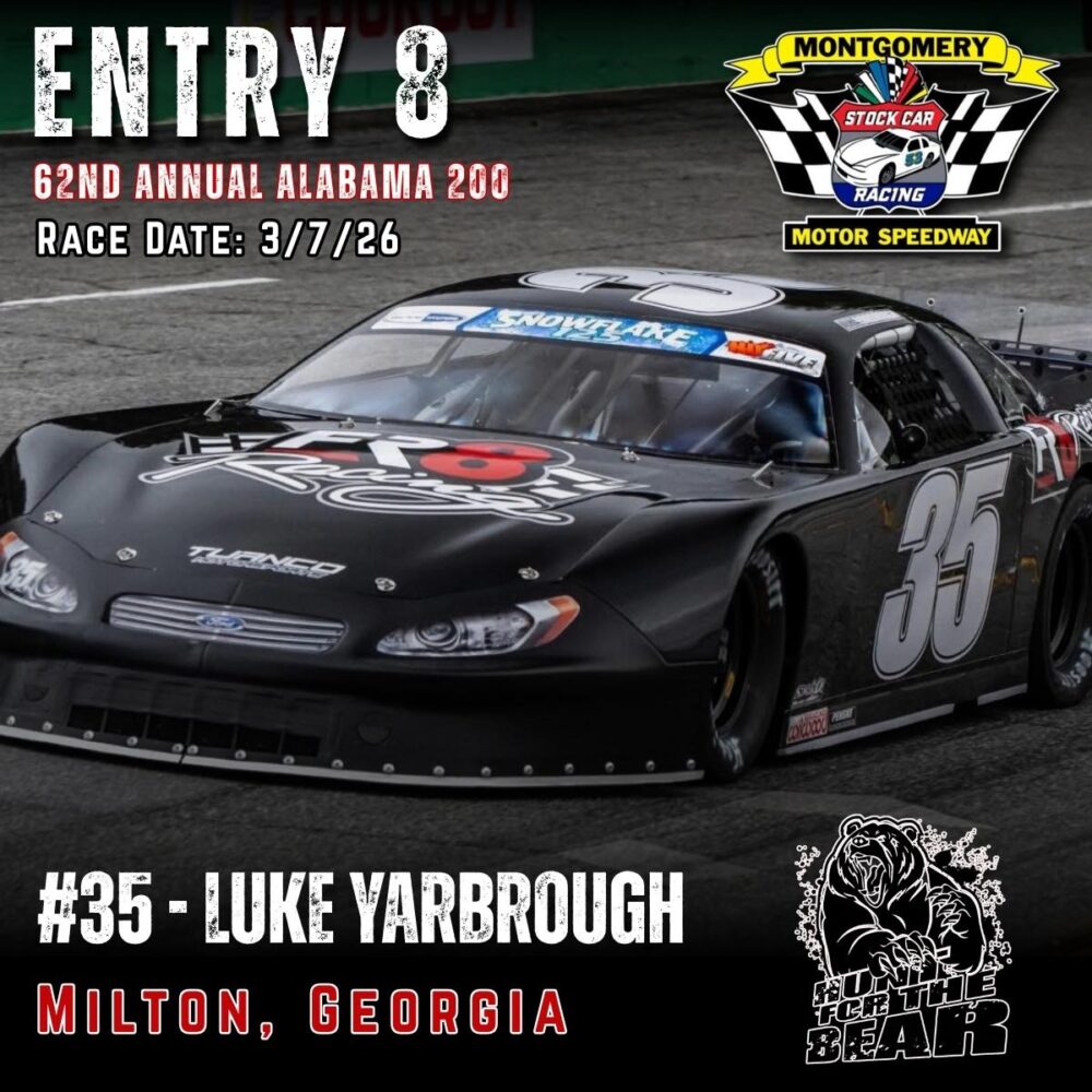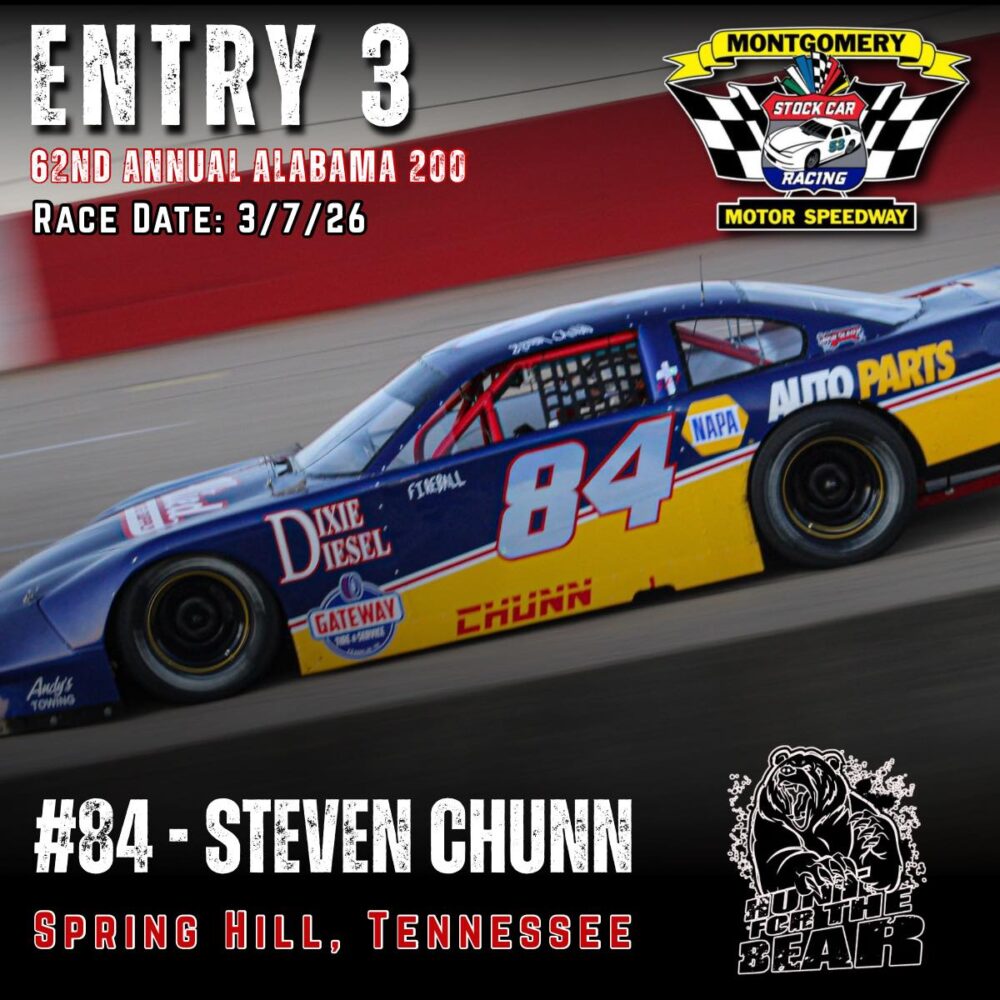 The 62nd Annual Alabama 200 is set for March 7th, 2026 at Montgomery Motor Speedway. As one of the premier Pro Late Model events in the country featuring 200 laps of hardcore side by side racing and a payday of 10k to the winner, the ALABAMA 200 “Hunt for the BEAR ” is one you don’t want to miss.