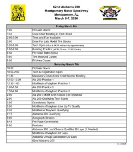 Permanent link to this article: https://www.montgomerymotorspeedway.org/2026/02/28/62nd-annual-alabama-200-detailed-schedule/